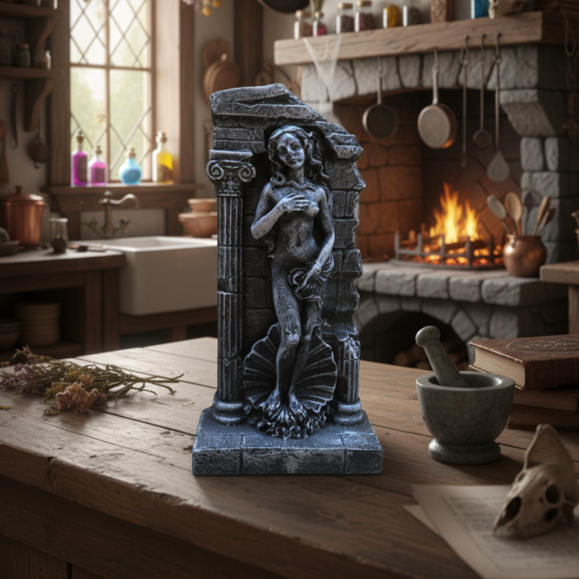 Com detalhes inspirados nas ruínas gregas, a estatueta da Afrodite irradia uma energia suave e envolvente, convidando você a se conectar com o amor, a harmonia e o autocuidado.
