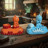 Representação simbólica do fogo sagrado. Coloque nele sua vela ritualística sempre que quiser trazer mais calor, coragem ou movimento para seu espaço mágico.