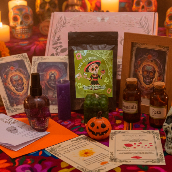 Entre velas, ervas e símbolos, cada item dessa caixa foi criado para te ajudar a abrir o coração, celebrar a vida e honrar aqueles que caminham contigo, mesmo do outro lado do véu.