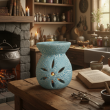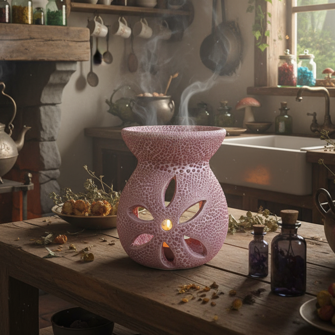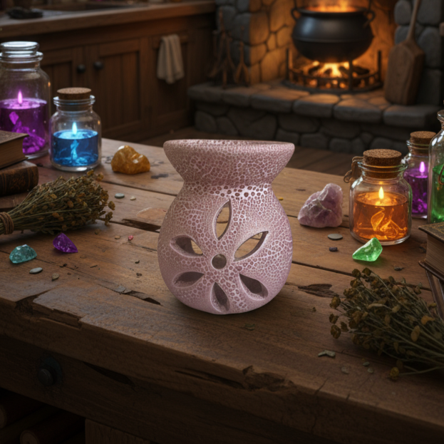Ele espalha perfumes suaves enquanto ilumina o ambiente com um brilho acolhedor, criando uma atmosfera perfeita para rituais, estudos, meditações ou simples pausas de respiro. Um toque de magia cotidiana para elevar sua energia e harmonizar o seu espaço.